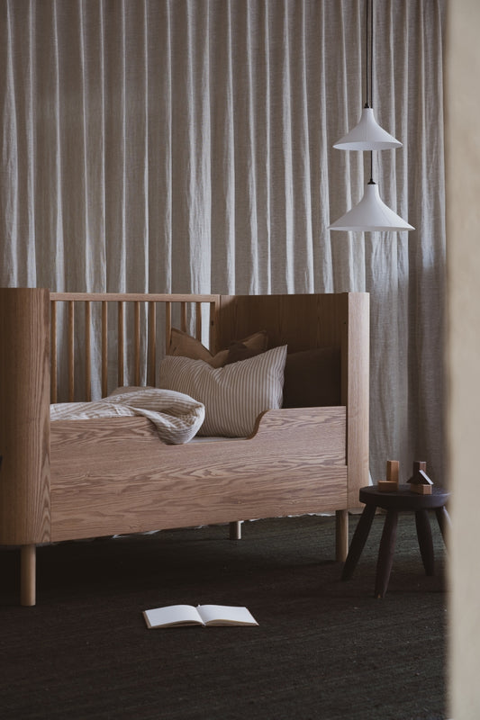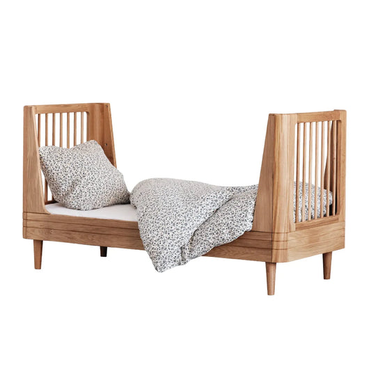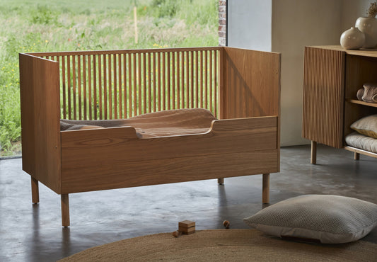 op aanvraagmini+ cot bed incl. junior kit - oak