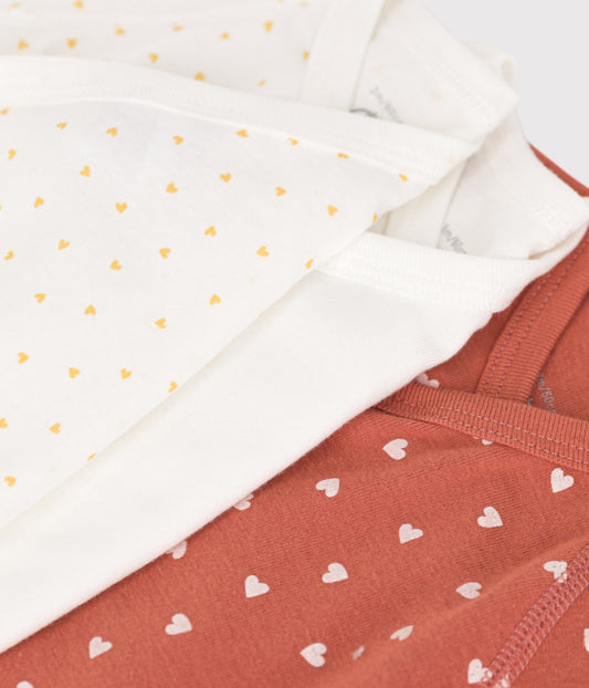 set van 3 katoenen overslagbody's met lange mouwen - kleine hartjes