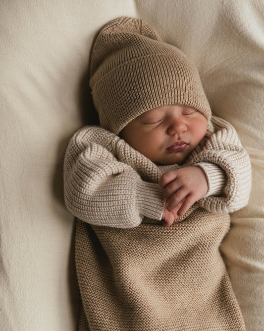 beanie fonzie - newborn - sand