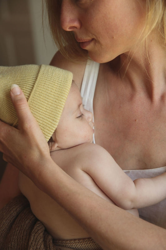 beanie fonzie - newborn - light yellow