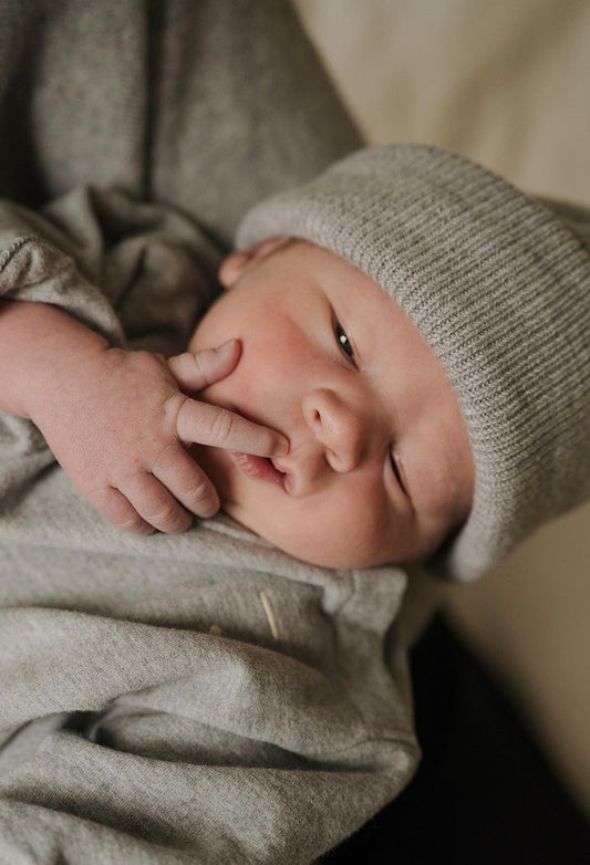 newborn beanie grey melange - cream