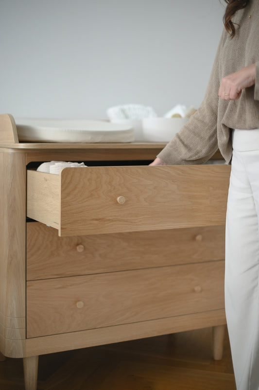 Uitverkochtluiertafel hip + lade - clay/naturel