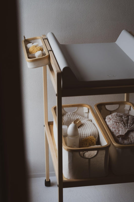 op aanvraaghangmand (flesjes) voor luiertafel - beige