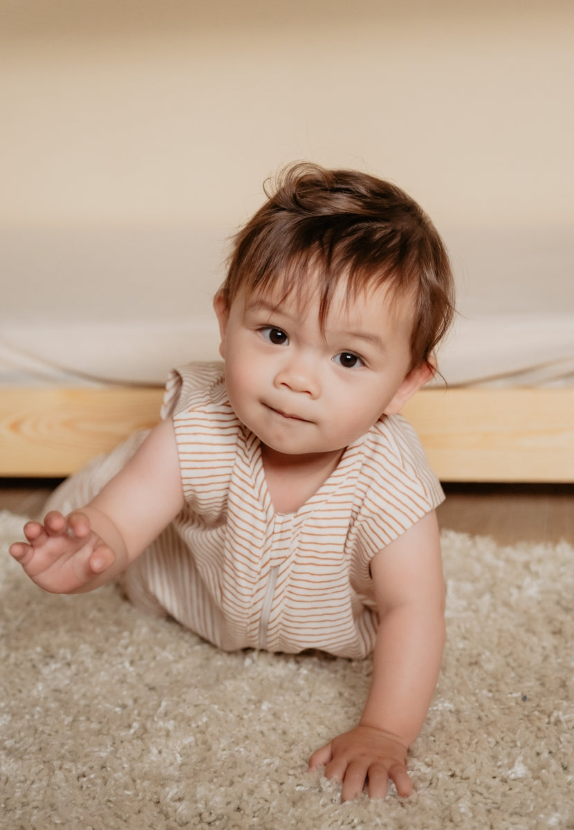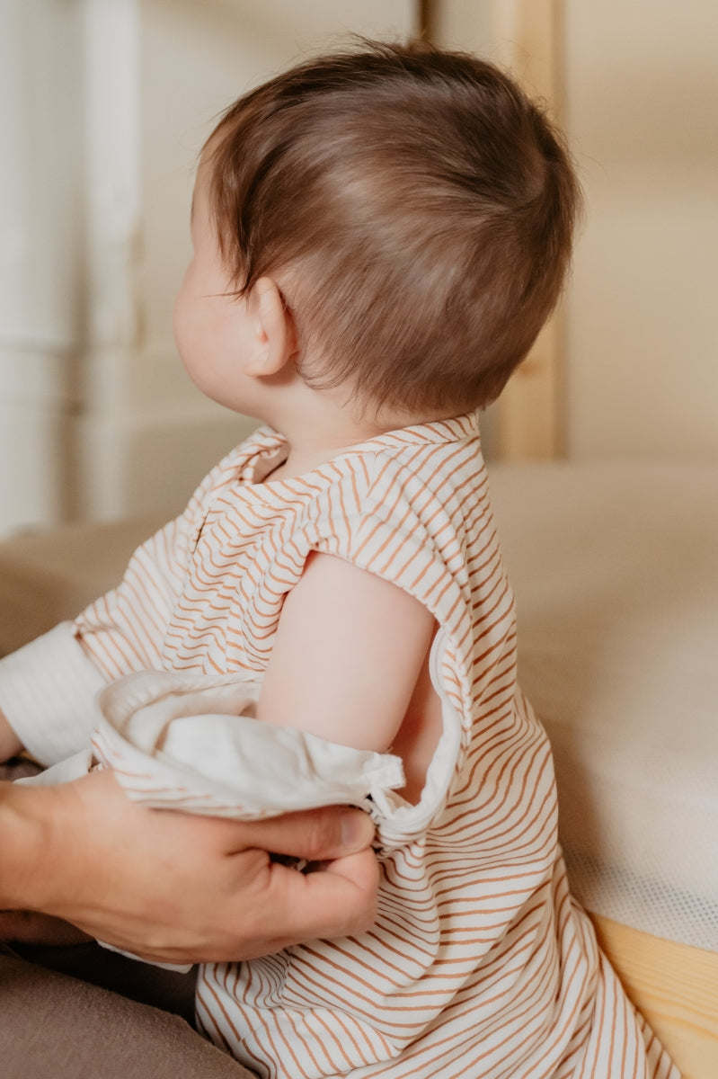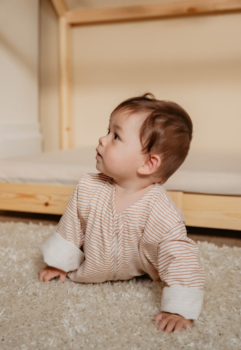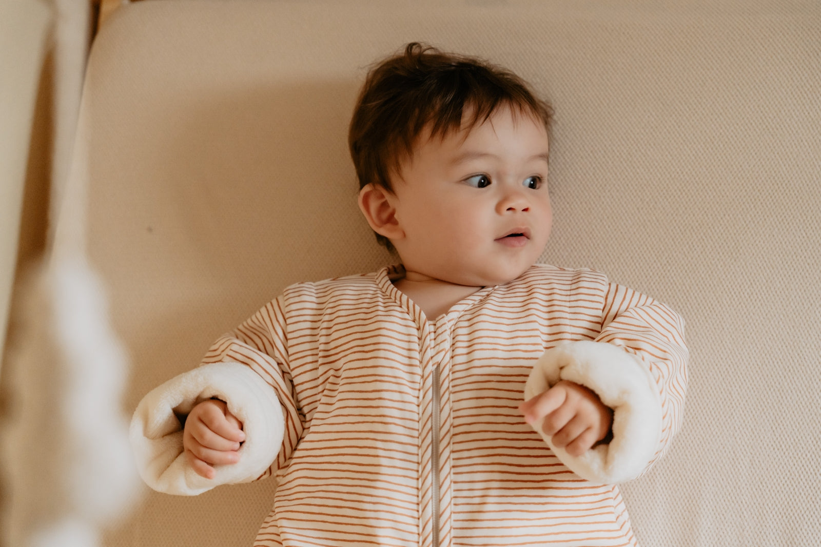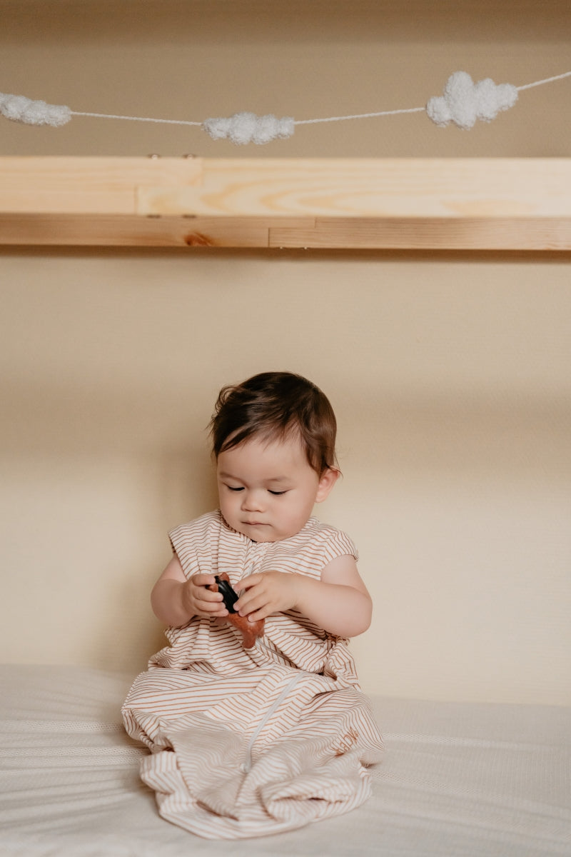 Bij de leeftijd van 6 tot 9 maanden raden we aan de slaapzak te gebruiken in combinatie met de buikband, zodat zelfs kleine baby's veilig kunnen slapen en knus op hun plaats blijven in de slaapzak. Dankzij de verstelbare lengte kun je hem tot zeker 2 jaar lang blijven gebruiken, dag en nacht.