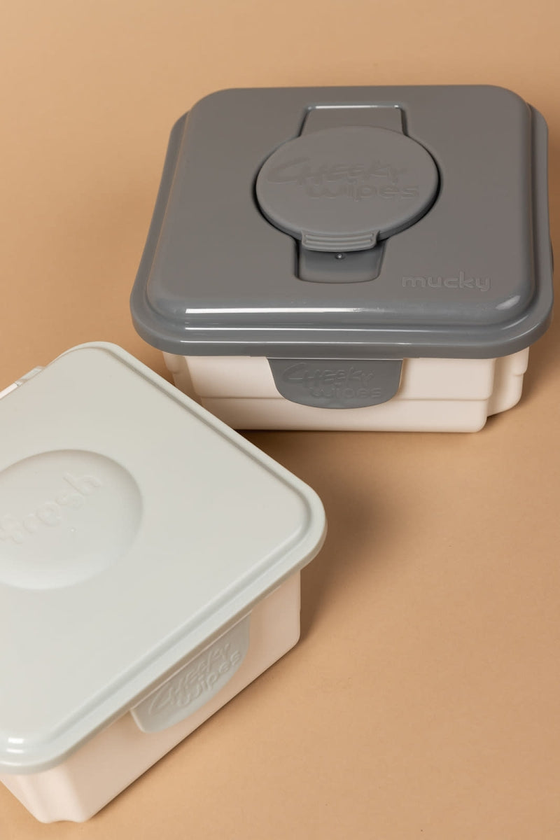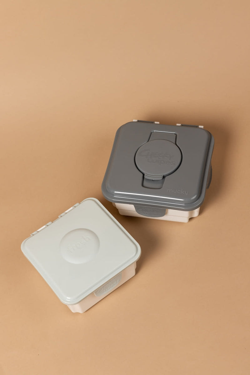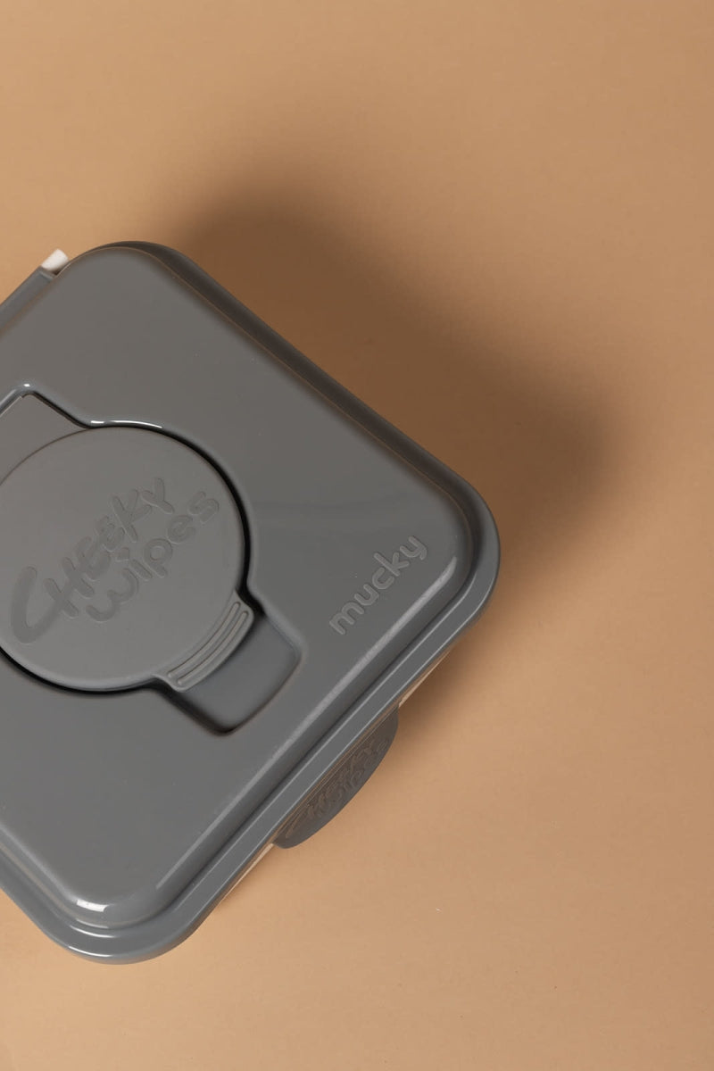 - Een makkelijk te openen donkergrijze doos voor vuile doekjes (=Mucky Baby Wipes-box) met mesh waszak er in zodat je de doekjes rechtstreeks in de wasmachine kan stoppen en de vieze doekjes niet hoeft aan te raken.