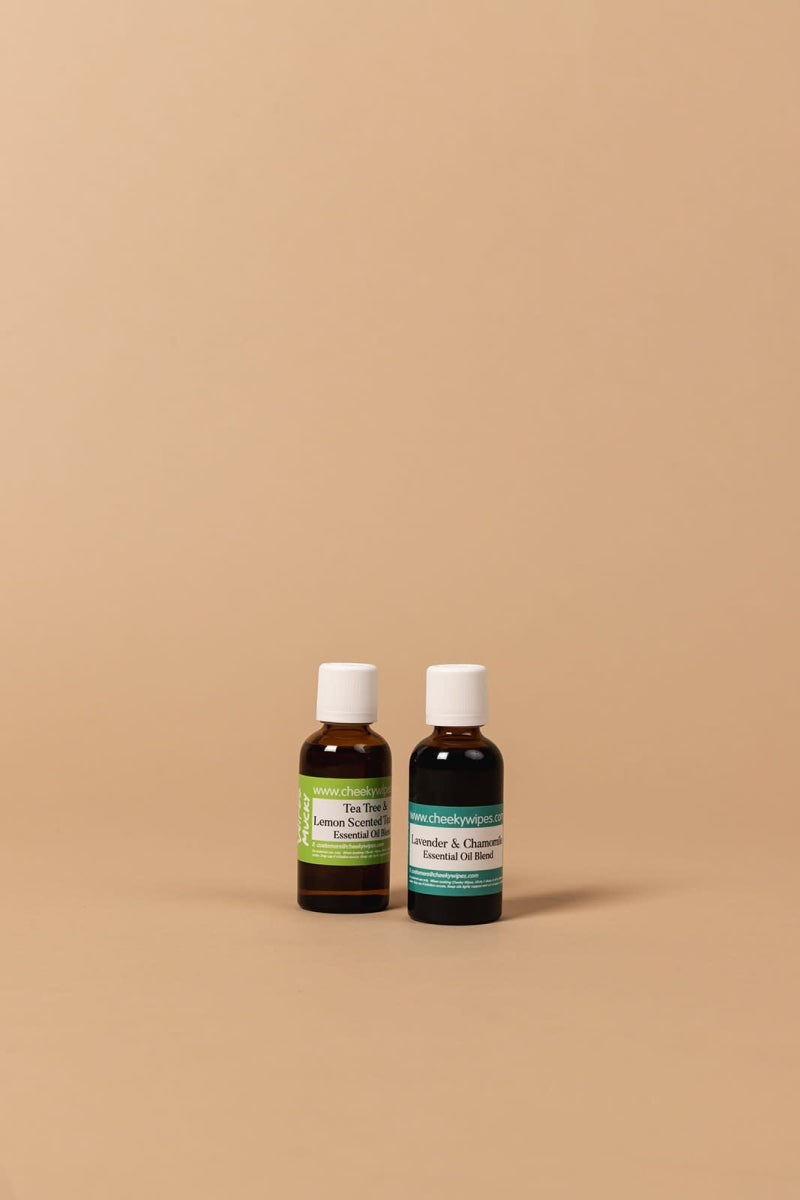 - 10 ml fles tea tree & tea tree lemon olie om te gebruiken in de doos met vuile doekjes.