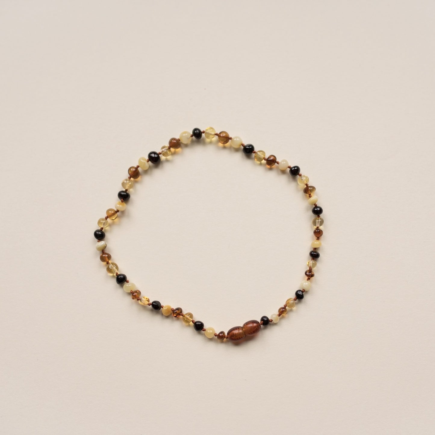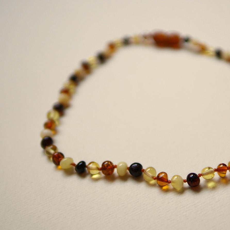 Deze mooie ketting van amber voor jouw mini is met de hand gemaakt en helpt de pijn van doorkomende tandjes verzachten.