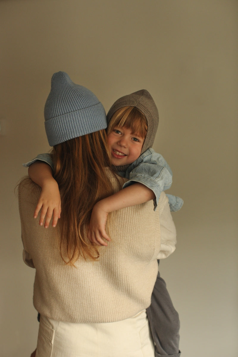 Prachtige rib beanie voor volwassenen, gemaakt van 100% merinowol. Super leuk om te twinnen met jouw mini!