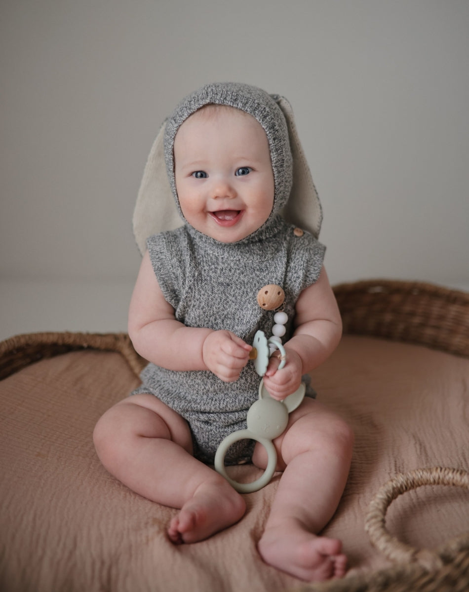 Help het geïrriteerde tandvlees van je baby te kalmeren met deze bijtring van Mushie, gemaakt van 100% niet-giftig, food-grade siliconen. Speciaal ontworpen om gemakkelijk vast te pakken met kleine vingertjes.
