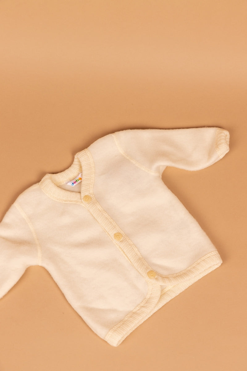 Ongelofelijk zacht jasje/giletje dat jouw mini niet meer zal willen uitdoen! Het jasje is gemaakt van 100% wol en voelt heel zacht en comfortabel aan.