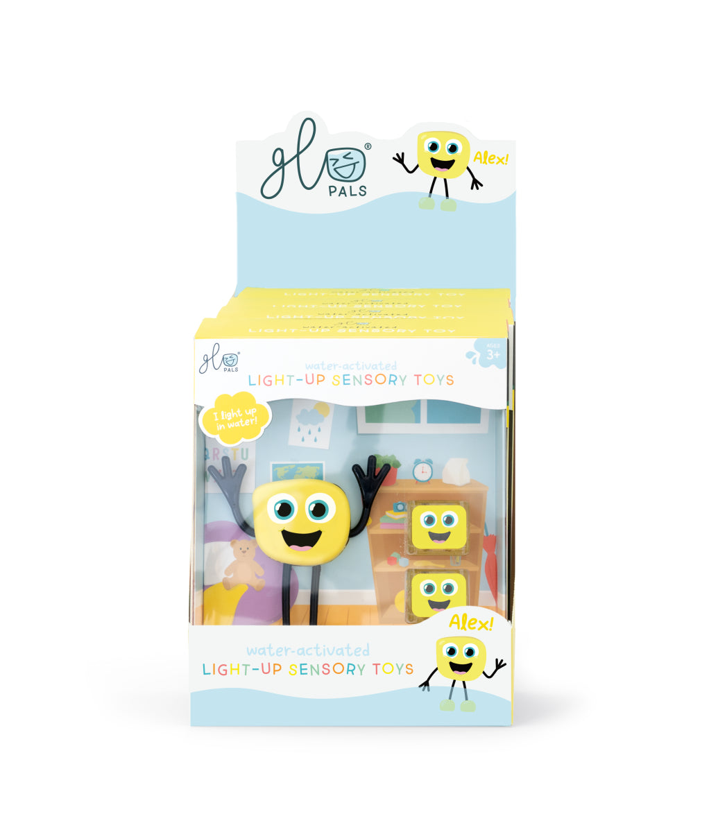 Set van 1 Glo Pal mannetje en 2 cubes. Plaats het lichtblokje in het mannetje, neem hem mee in het water en zie hoe hij oplicht! Het Glo Pal mannetje kan gebruikt worden in combinatie met alle Glo Pals cubes.