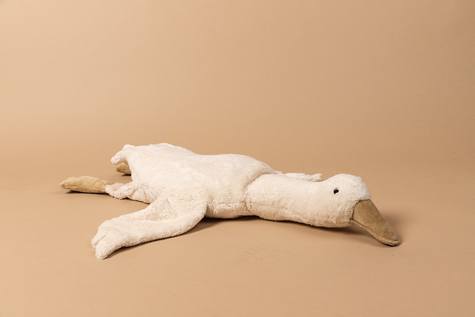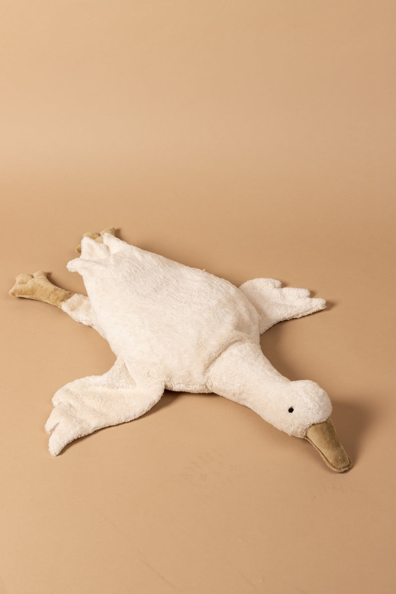 Deze handgemaakte gans is gemaakt van organisch katoen en is gevuld met lamswol. De gans is niet enkel een knuffel, maar kan ook gebruikt worden als warmtekussen. De buik van deze gans is gevuld met een speltkussen, dat je kan opwarmen in de oven.