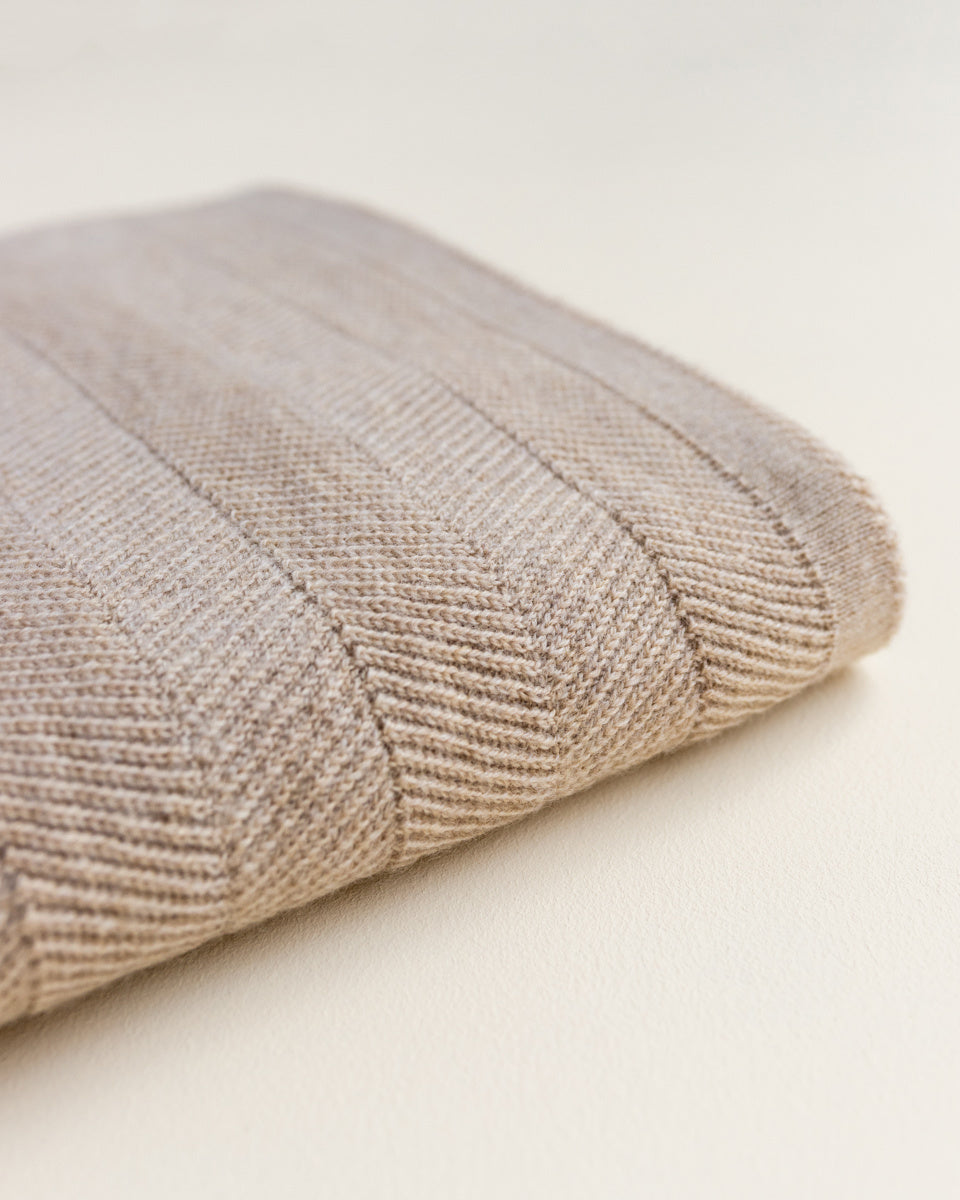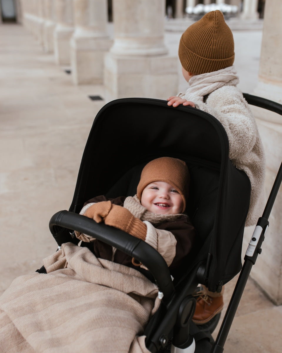 Wikkel je baby in zachtheid met deze stevige, wollen deken in een visgraatpatroon. Deze warme, zware deken houdt je kleintje heerlijk knus, thuis of onderweg. Gemaakt van fijne merinowol, biedt het de perfecte mix van zachtheid en ademend vermogen, en zorgt het voor een veilige en rustgevende omgeving