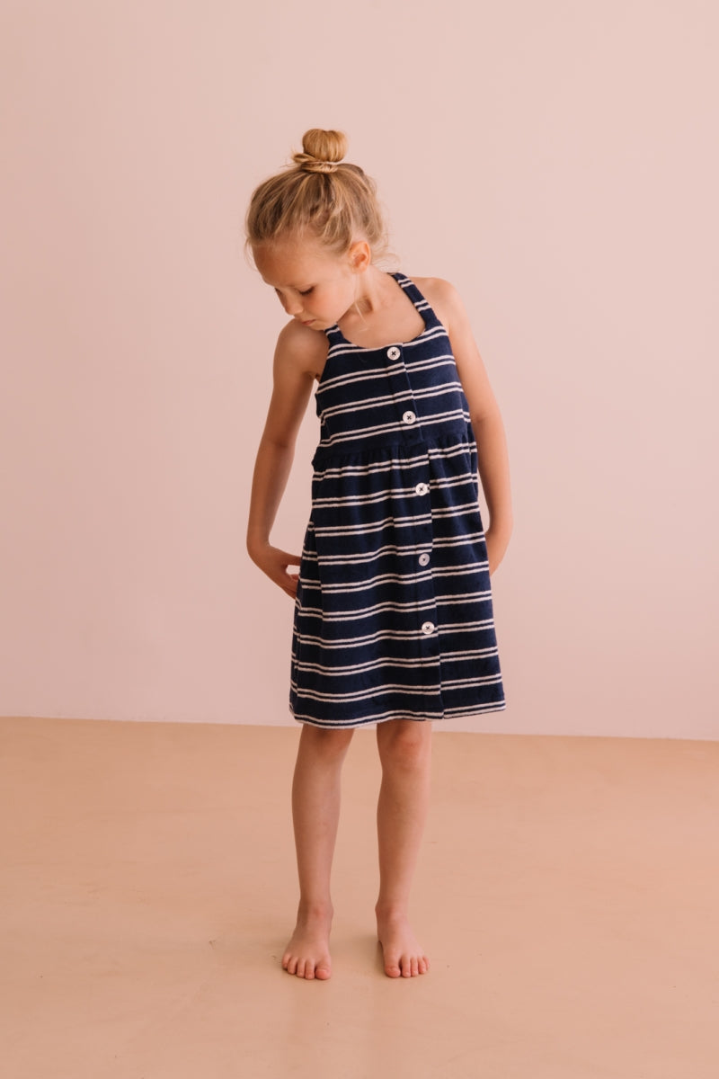 Zomers kleedje met strepen in een zachte badstof van We Are Kids, een topstuk deze zomer.