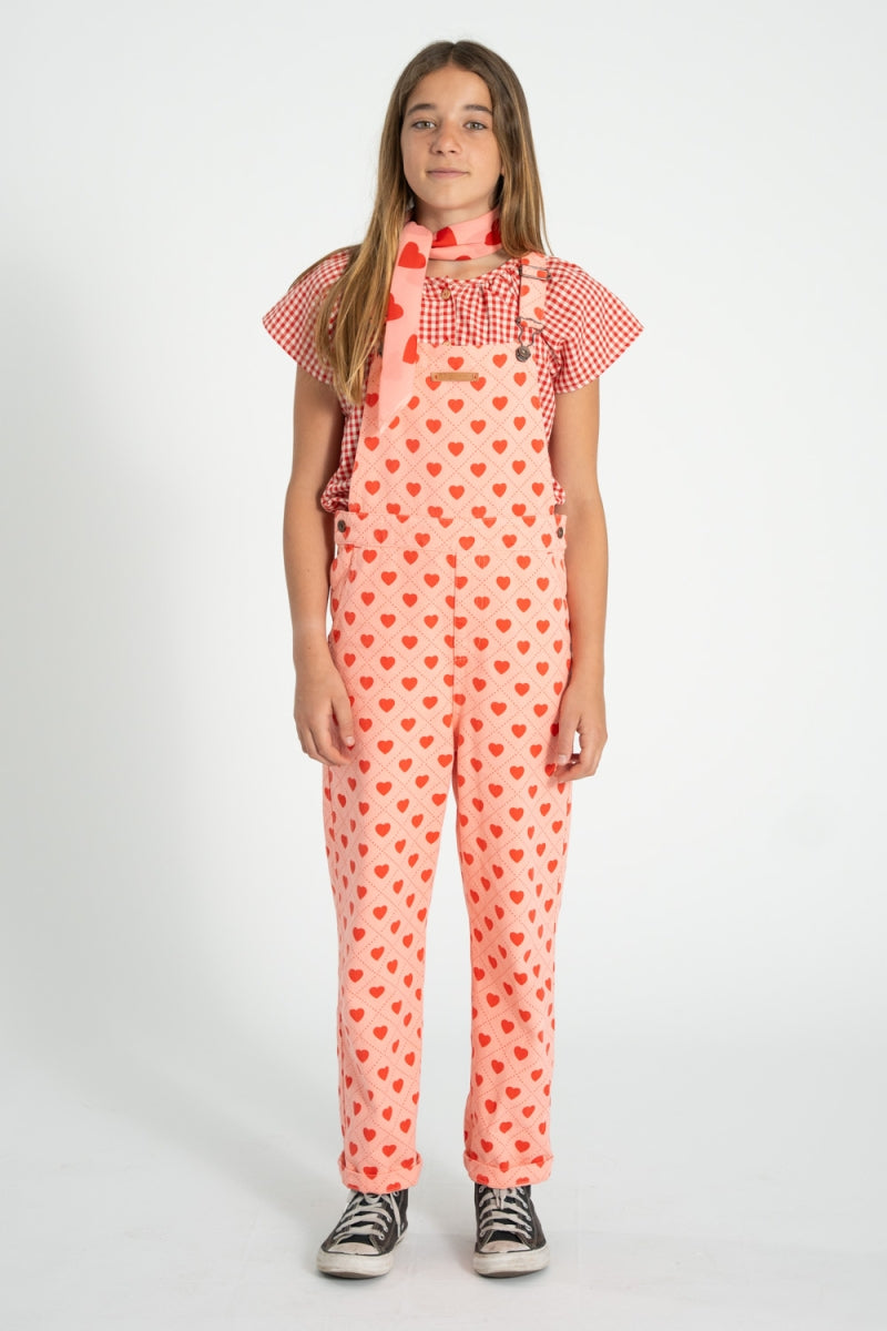 Salopette met leuke& zomerse hartjesprint en verstelbare bandjes om de lengte te kunnen aanpassen.
