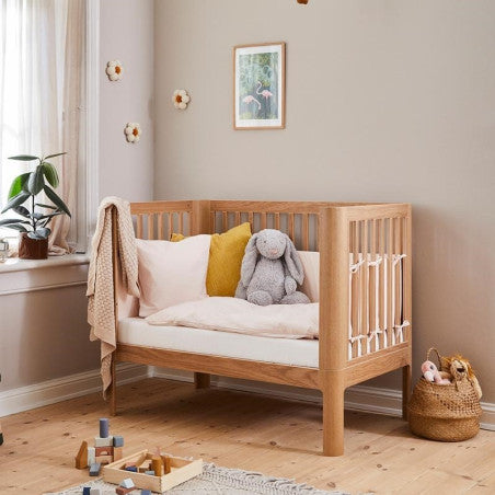 Het babybed als het juniorbed zijn gemaakt van FSC™-gecertificeerd hout en maken deel uit van de FLEXA Nova-collectie - een reeks aanpasbare kindermeubels ontworpen door de bekroonde designer Charlotte Høncke.