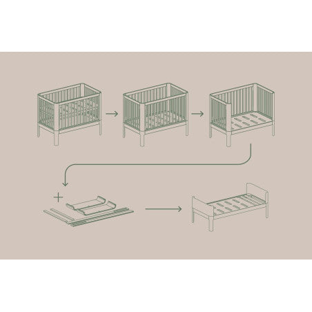 Dit babybedje is ontworpen om je kind te volgen vanaf de geboorte tot de peutertijd - en daarna. Zo hoef je je kind niet naar een nieuw bedje te brengen en kan je kleintje nog vele jaren genieten van het comfort van slapen in zijn vertrouwde bedje.