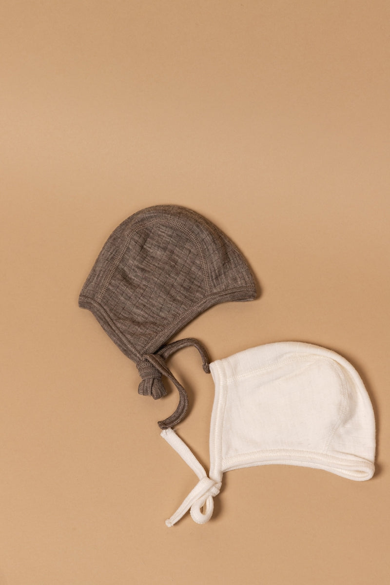 Knus en warm mutsje gemaakt van 100% zachte merinowol. Dankzij de twee touwtjes kan je het mutsje onder de kin vast maken. Perfect voor newborns. Binnen & buiten te dragen.