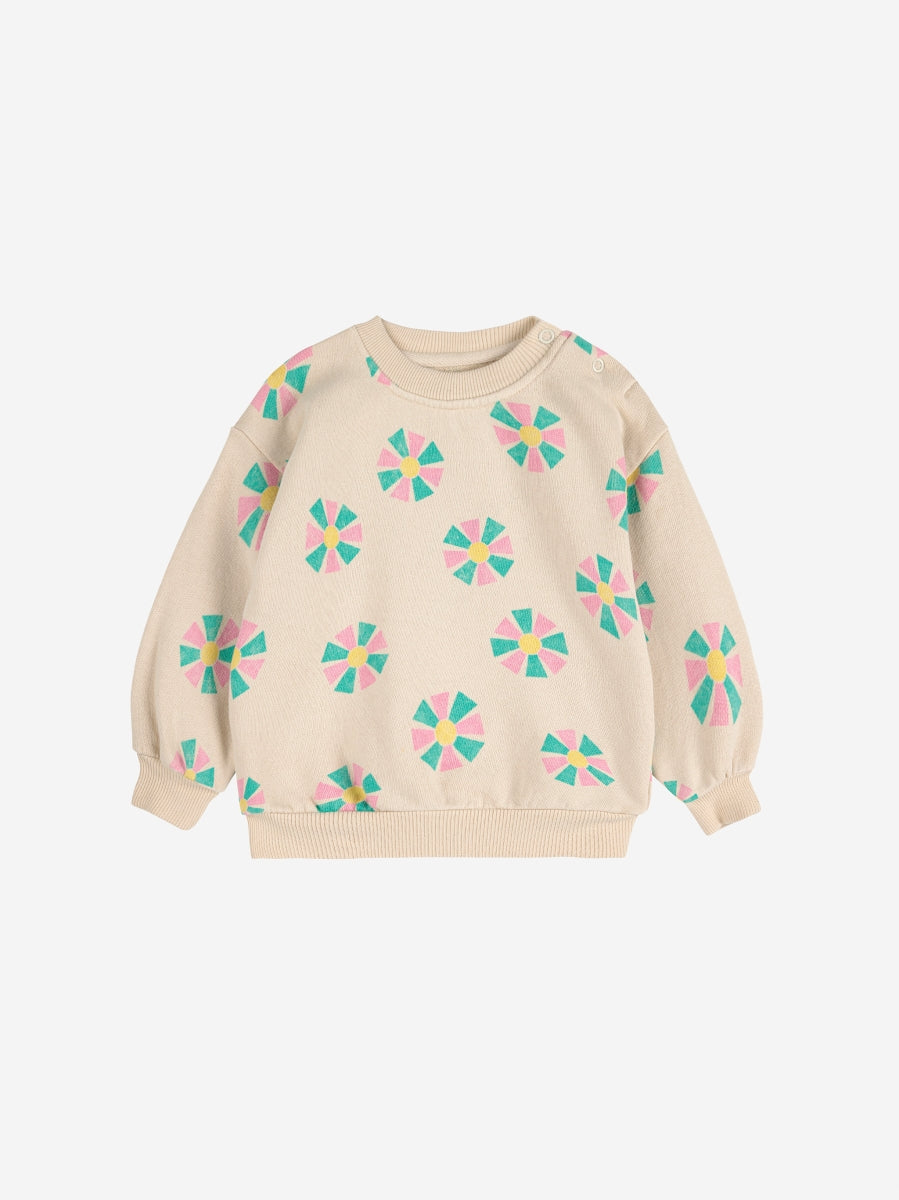 Schattige sweater met kaleidoscope print van Bobo Choses. De sweater heeft drukknoopsluiting op de schouder en losse pasvorm. Lekker zachte fleece stof.