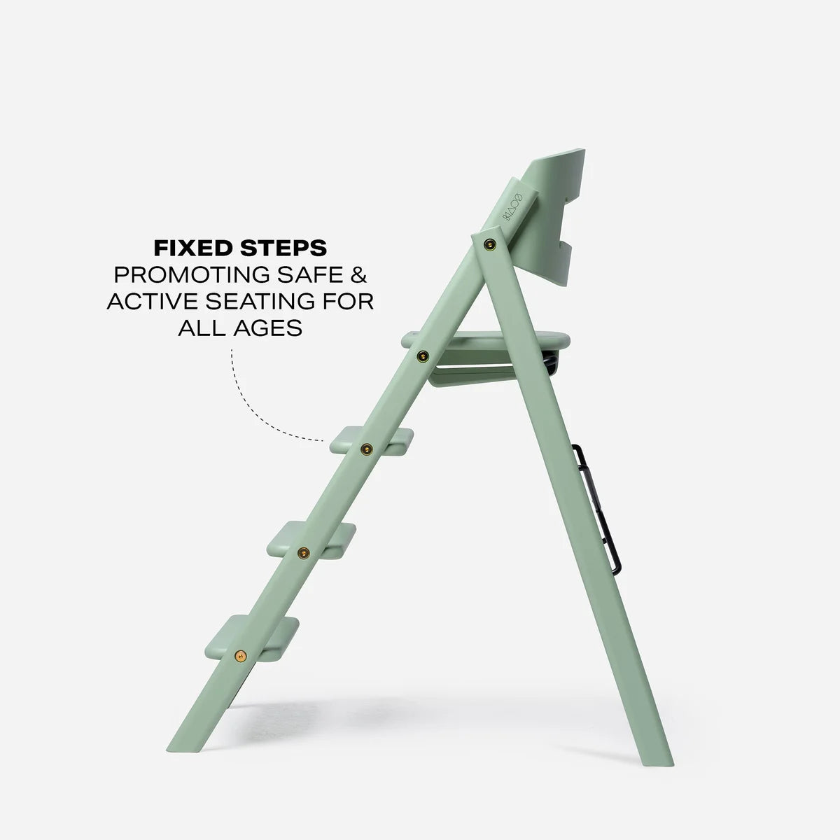 KAOS KLAPP® heeft vaste trapladders die nooit versteld mogen worden. Je mini kan zelf op en van de stoel klimmen, wat al vroeg een groot gevoel van beheersing bevordert. Naarmate je kind groeit, zullen de voeten een natuurlijke, ergonomische positie vinden op verschillende treden, wat te allen tijde een stabiele voetensteun biedt.