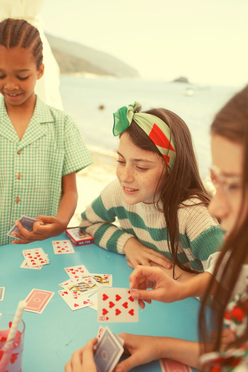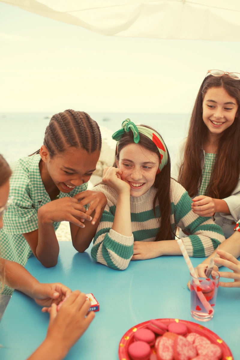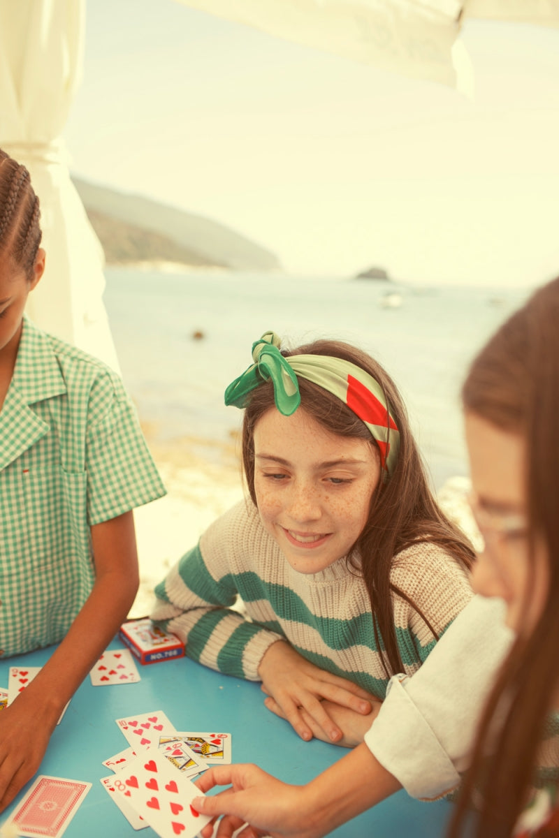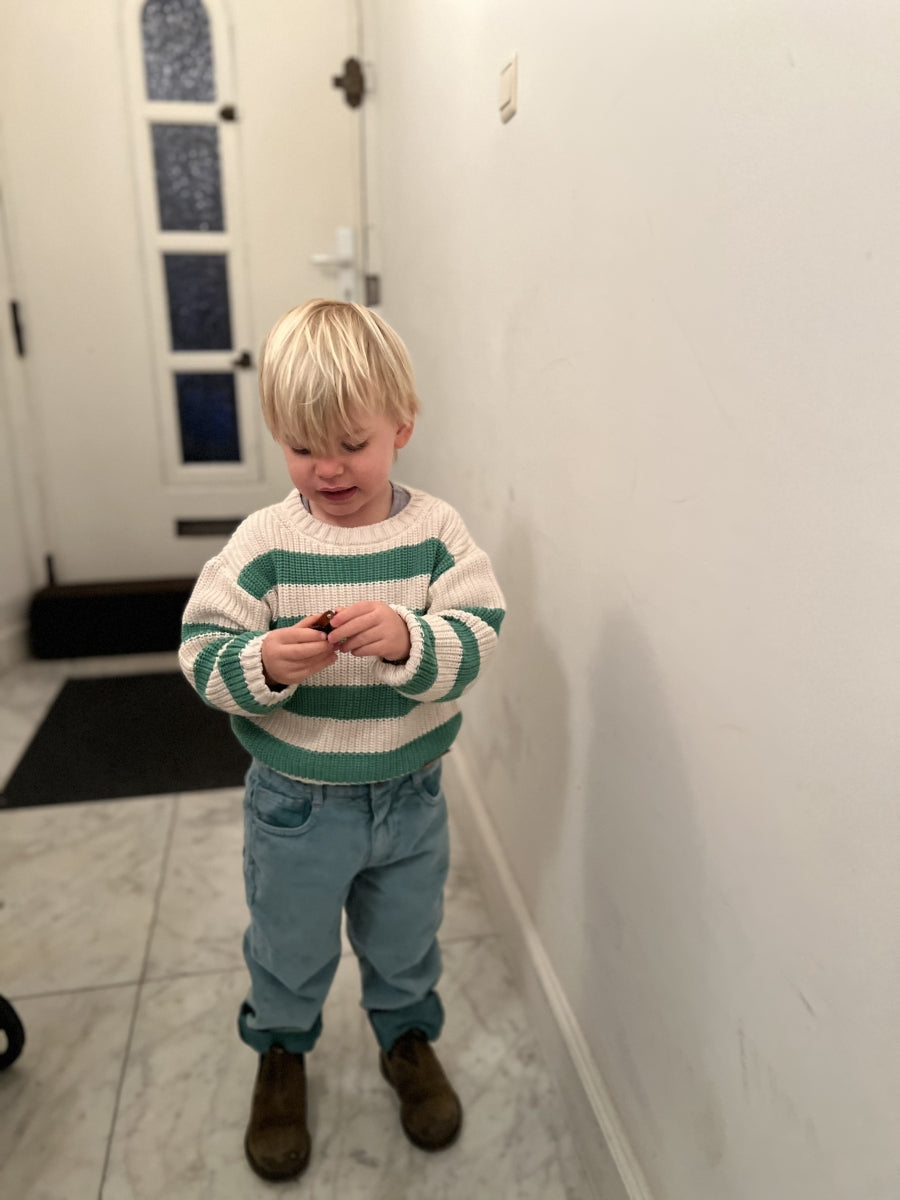knitted sweater - ecru & green stripes