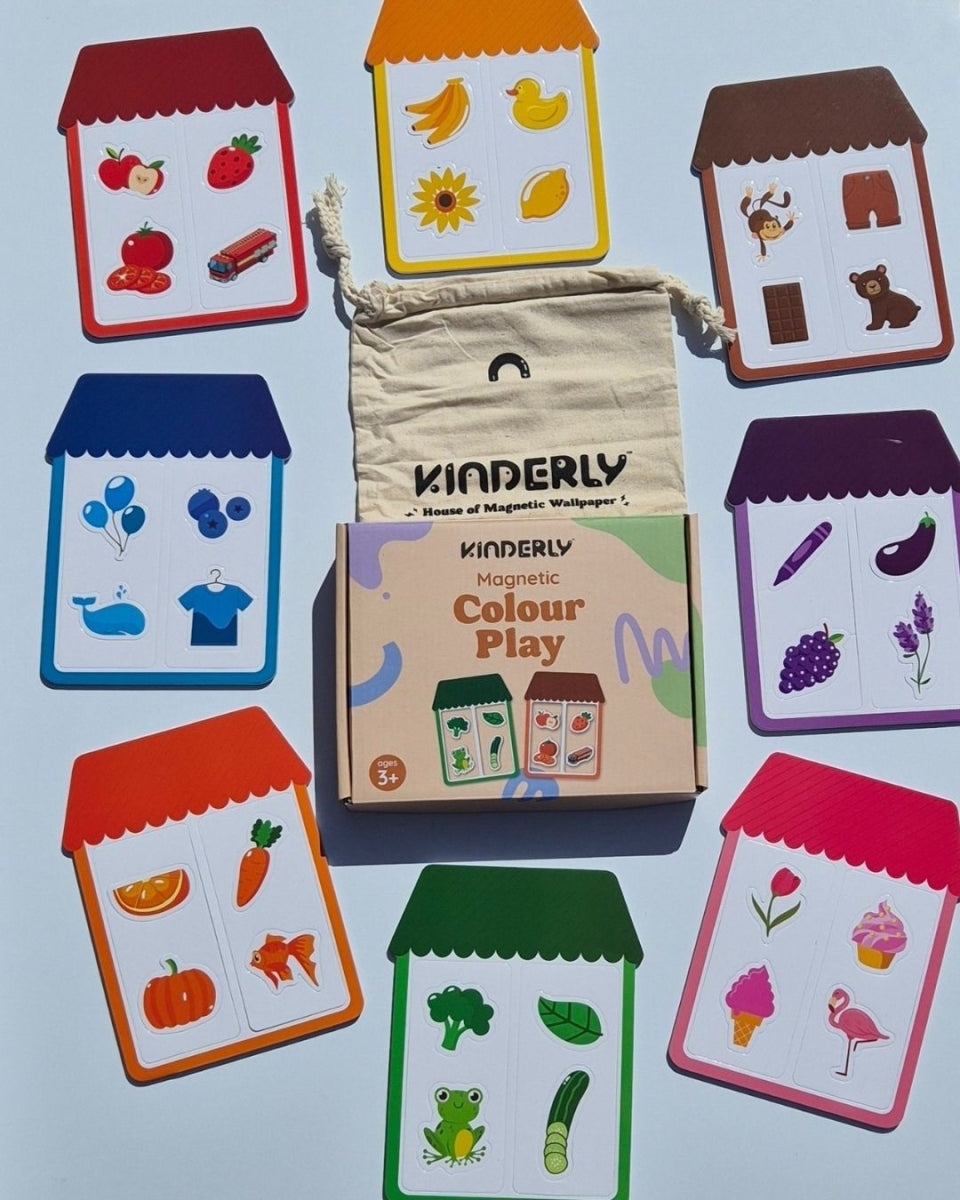 Welk figuurtje past in welk huisje? Dankzij het magnetisch kleurenspel van Kinderly kan je mini de kleuren op een speelse manier leren, oefenen en leren sorteren. Gebruik het spel in combinatie met de magnetische muurstickers van hetzelfde merk.