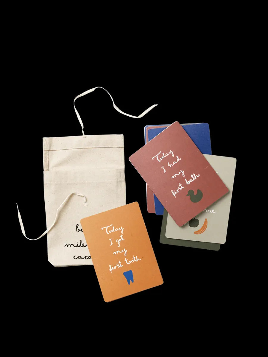 Leg elke waardevolle mijlpaal vast met deze prachtige kaarten en creëer blijvende herinneringen aan de magische reis die jij en je kind samen maken. De set wordt geleverd in een katoenen tasje voor eenvoudige opslag, zodat je deze dierbare herinneringen veilig en georganiseerd kunt bewaren.