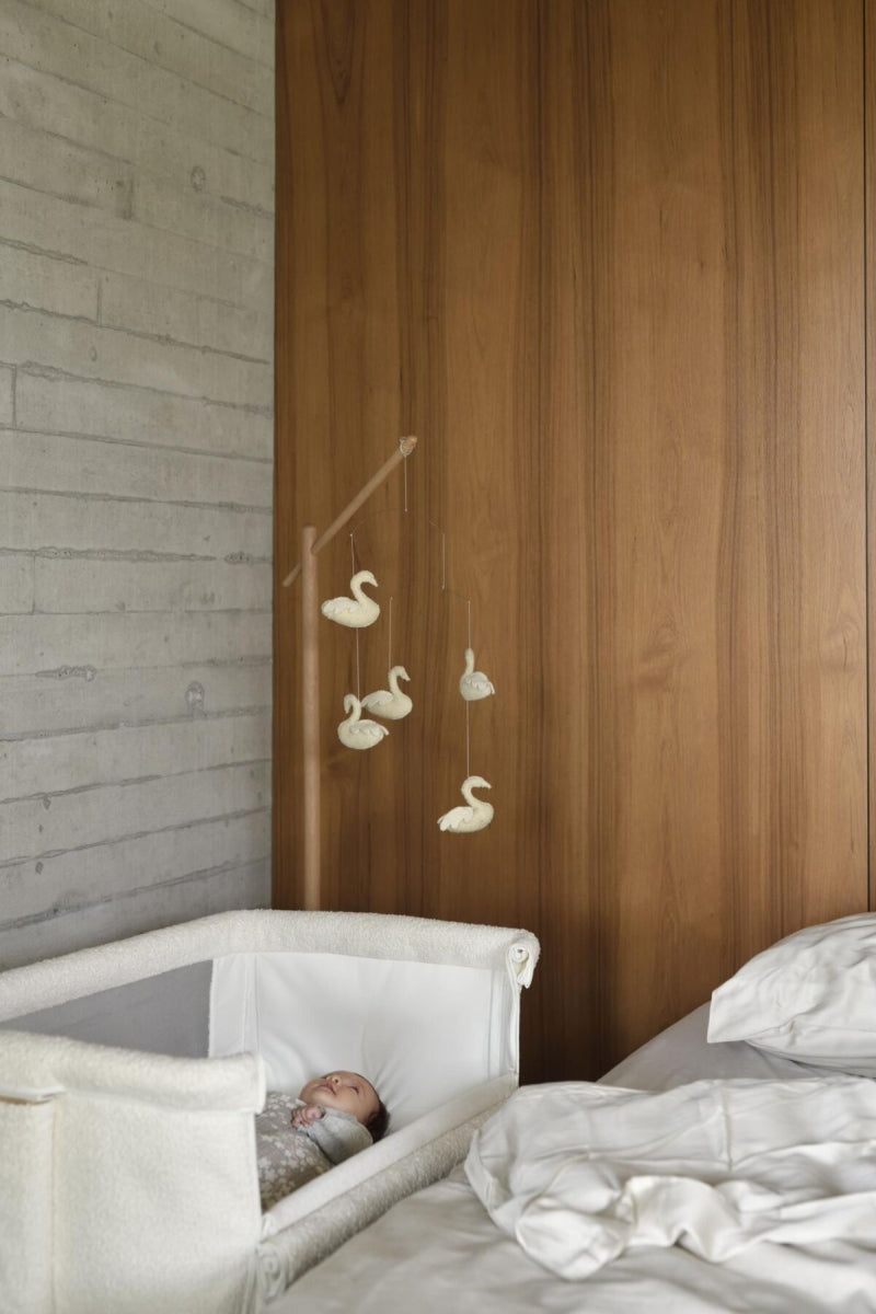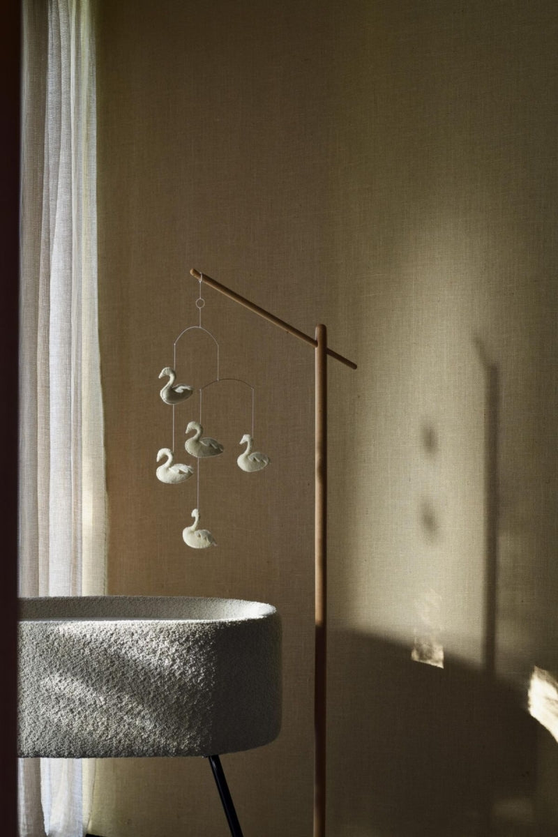 Deze mobiel kan moeiteloos worden bevestigd aan de apart verkrijgbare Quax houten mobielstandaard waardoor de zachte figuren zachtjes boven de wieg, het bedje, het park of de eetstoel van je baby kunnen zweven, voor een kalmerend en visueel stimulerend effect. Met de Quax Baby Mobiel voeg je een vleugje charme en verbeelding toe aan de ruimte van je kleintje.
