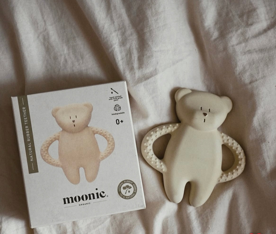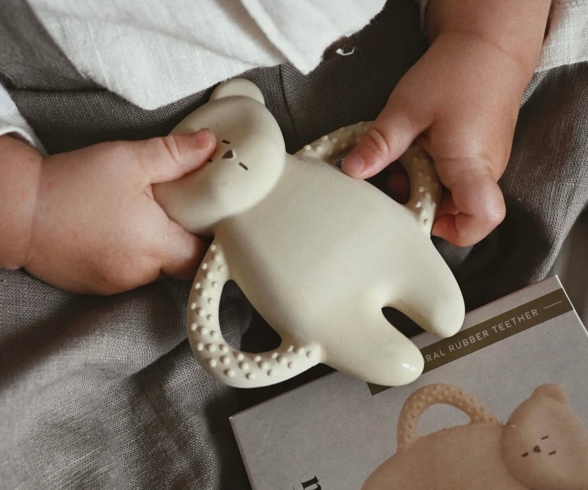 De bijtring is gemaakt van 100% natuurlijk rubber en biedt verschillende texturen om het tandvlees van je baby te kalmeren.