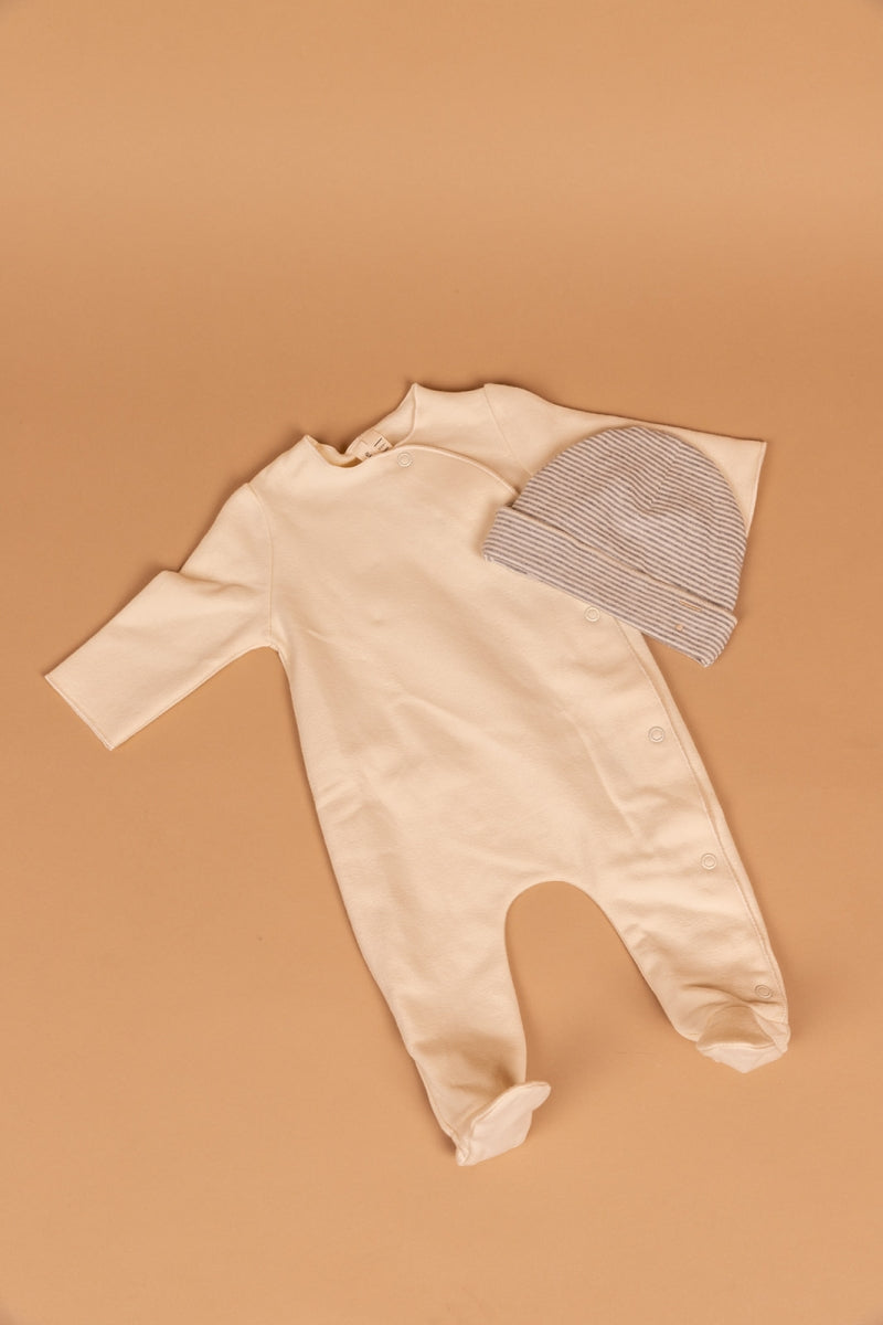 Dit newborn pakje is gemaakt van de zachte biologische katoenen fleece. Het heeft een ronde hals en drukknopen aan de voorkant. Het perfecte eerste pakje.