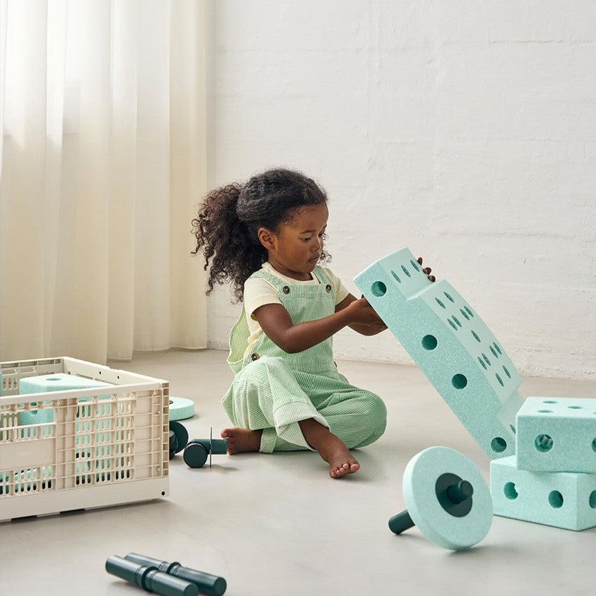 Verkrijgbaar in kleuren die passen bij je MODU-blokken, past de kist naadloos in elke speelruimte.
