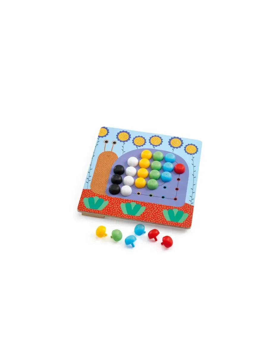 Een mozaïekspel dat geschikt is voor kinderen vanaf 3 jaar om fantastische schilderijen te maken aan de hand van de gekleurde pinnen.