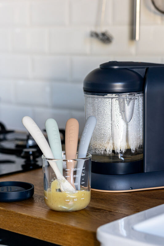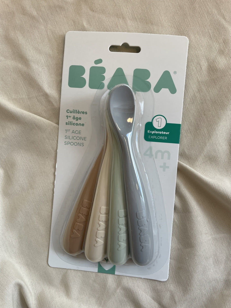 Set van 4 lepels in silicone van BÉABA®. Speciaal ontworpen voor het ontdekken van de eerste hapjes.