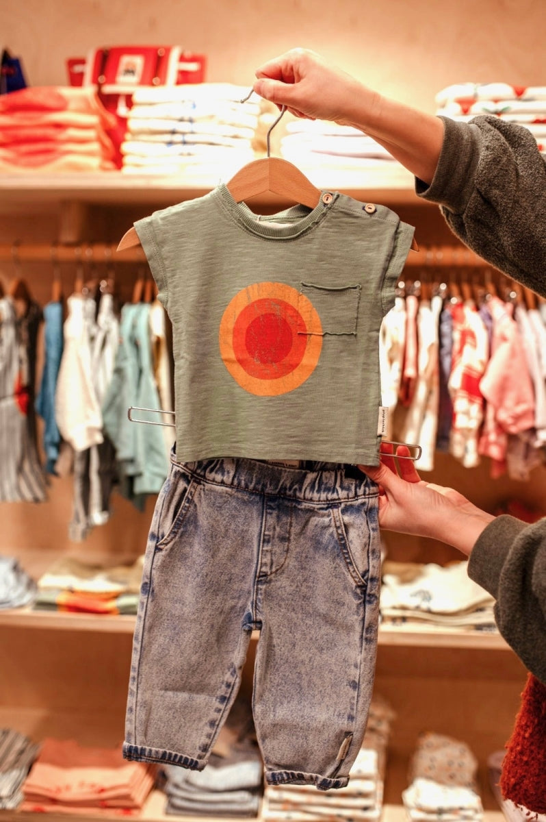tshirt - green multicolor circle print
