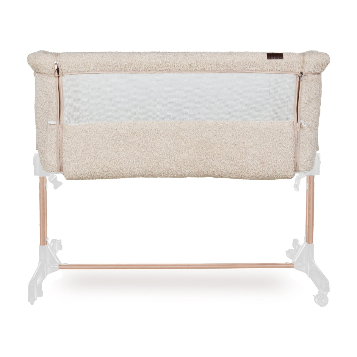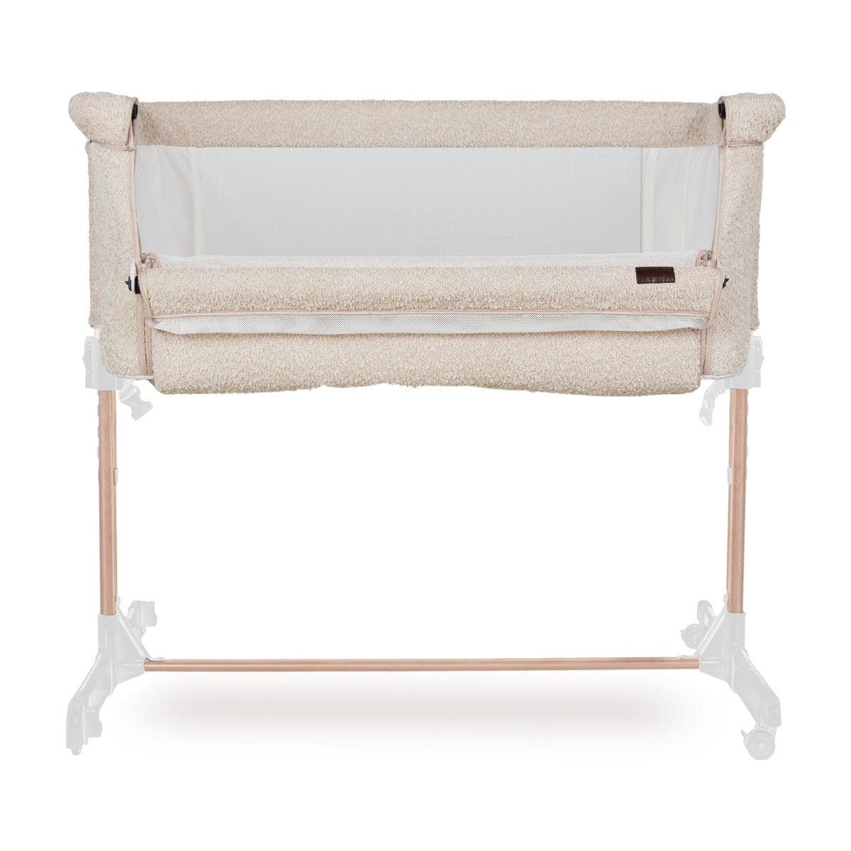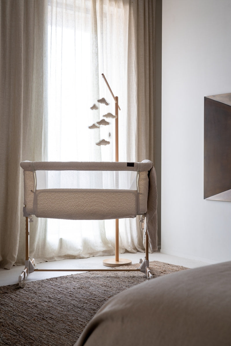 De wieg is beschikbaar in een tijdloos quilted stof in clay of in zachte bouclé stof, waardoor het niet alleen functioneel maar ook knus en gezellig staat in je slaapkamer. Handige wieltjes zorgen ervoor dat je de wieg moeiteloos kunt verplaatsen binnen de kamer. De poten hebben een natuurlijke houtlook, waardoor de wieg een extra elegante uitstraling krijgt. Laat de Side by Side co-sleeper wieg een functioneel en stijlvol element zijn tijdens die kostbare momenten met je baby.