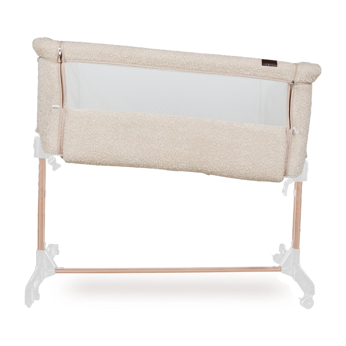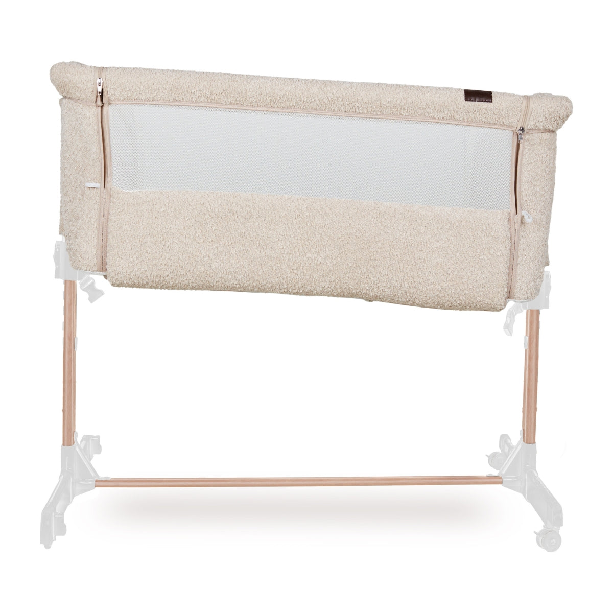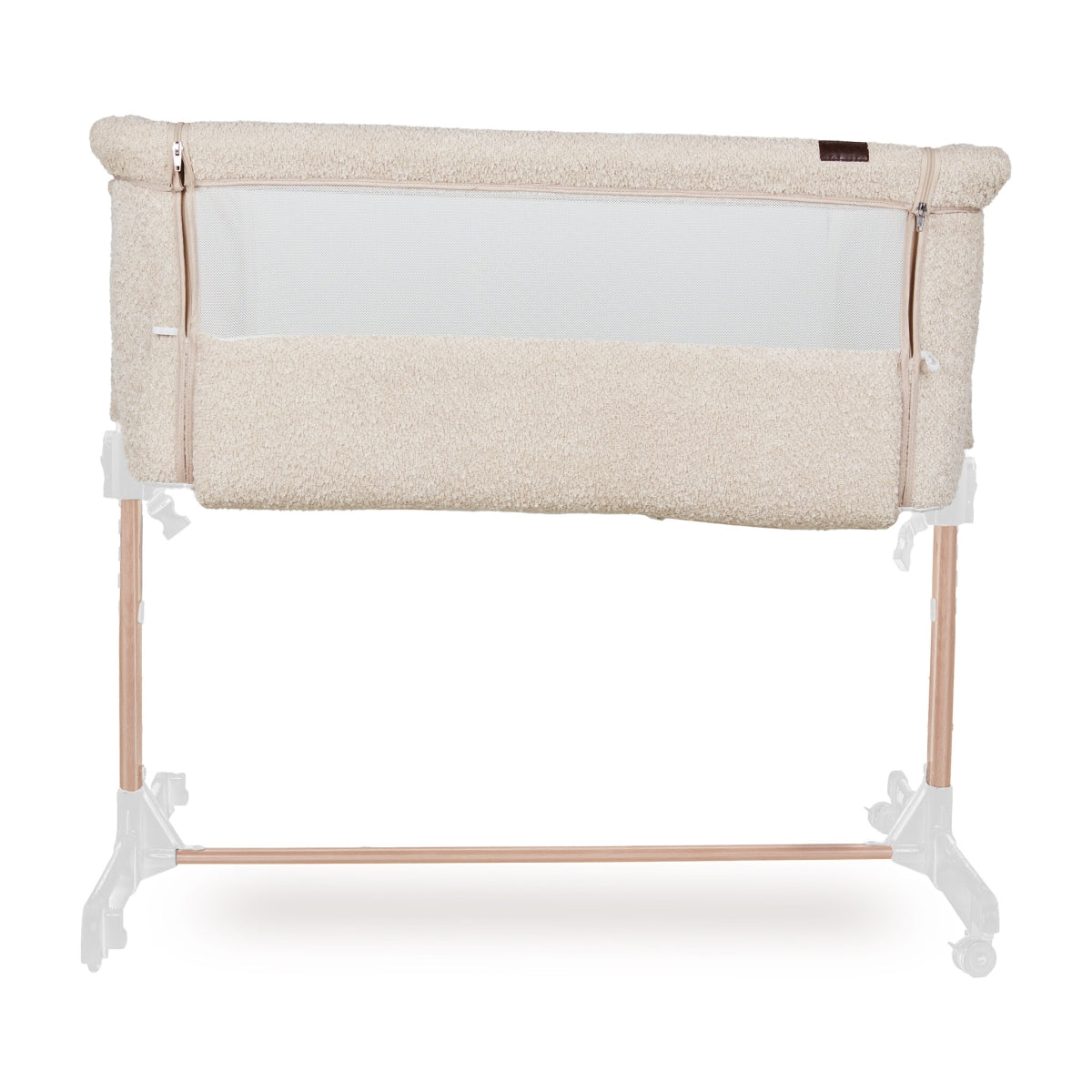 De wieg is beschikbaar in een tijdloos quilted stof in clay of in zachte bouclé stof, waardoor het niet alleen functioneel maar ook knus en gezellig staat in je slaapkamer. Handige wieltjes zorgen ervoor dat je de wieg moeiteloos kunt verplaatsen binnen de kamer. De poten hebben een natuurlijke houtlook, waardoor de wieg een extra elegante uitstraling krijgt. Laat de Side by Side co-sleeper wieg een functioneel en stijlvol element zijn tijdens die kostbare momenten met je baby.