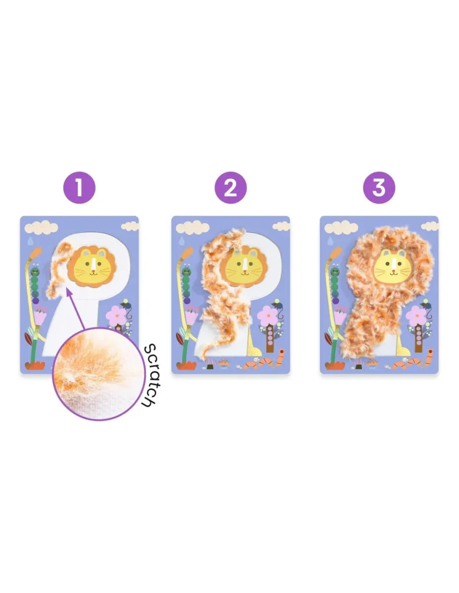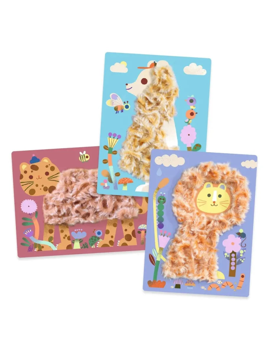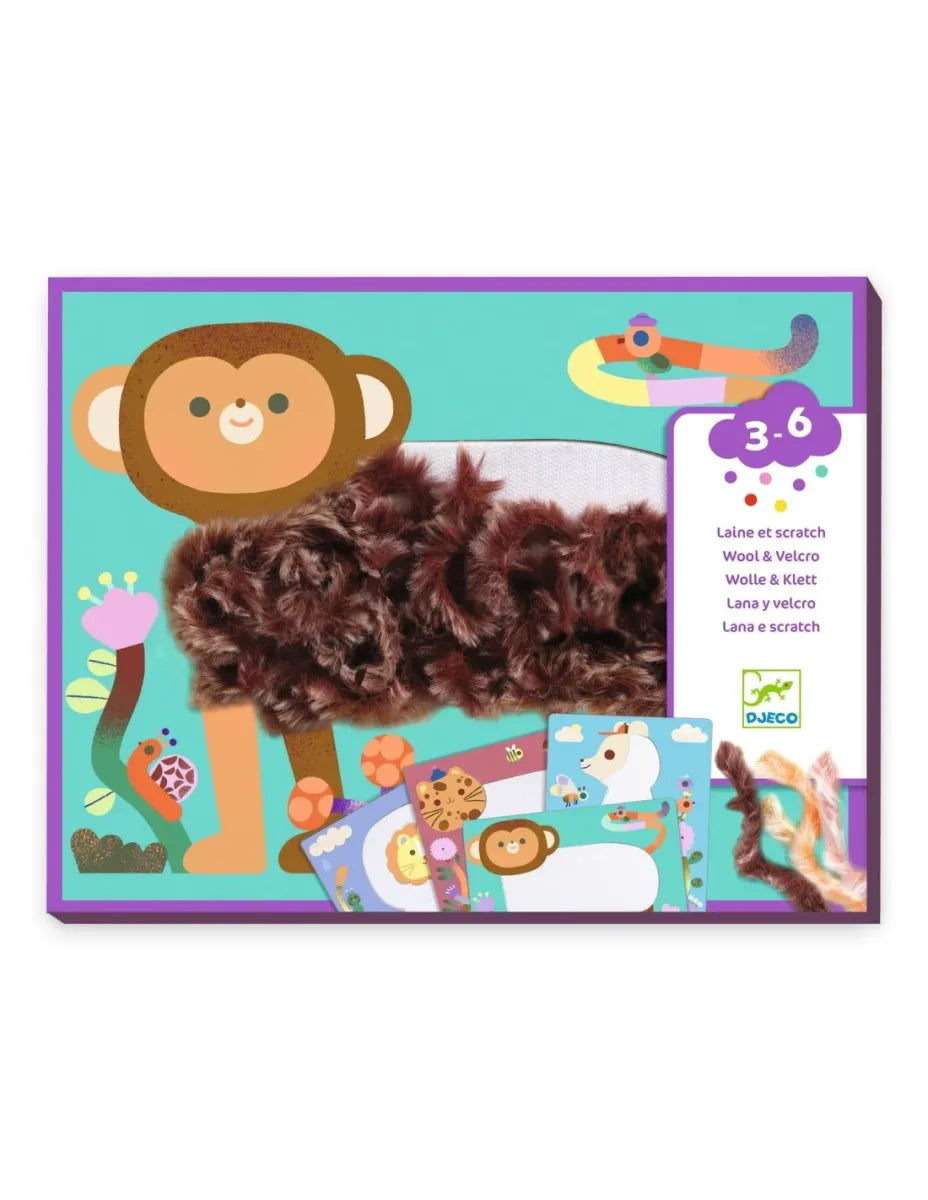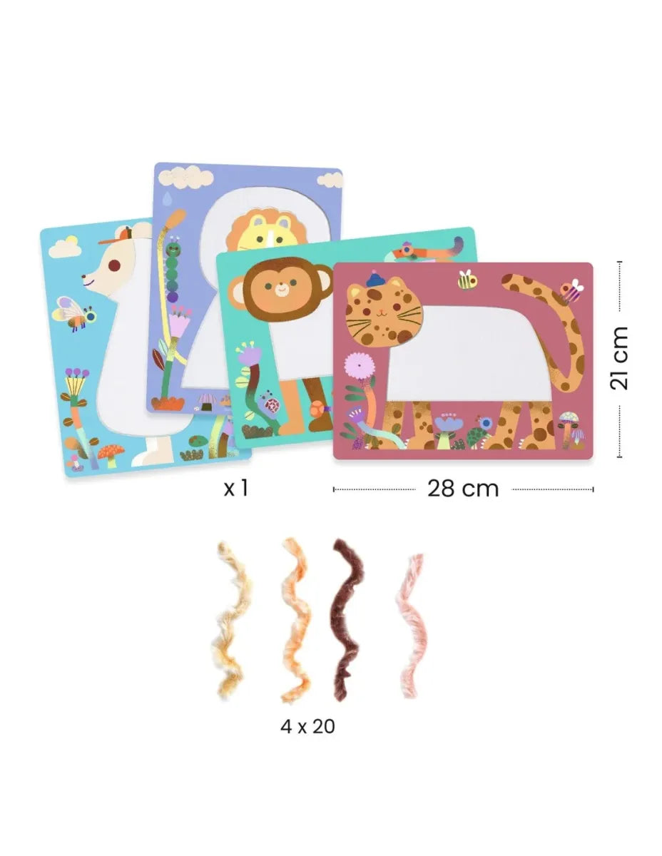 Een activiteit zo zacht als een knuffel! Je mini plaatst de draadjes zachte wol op het Velcro®-klittenband om schattige diertjes te maken.